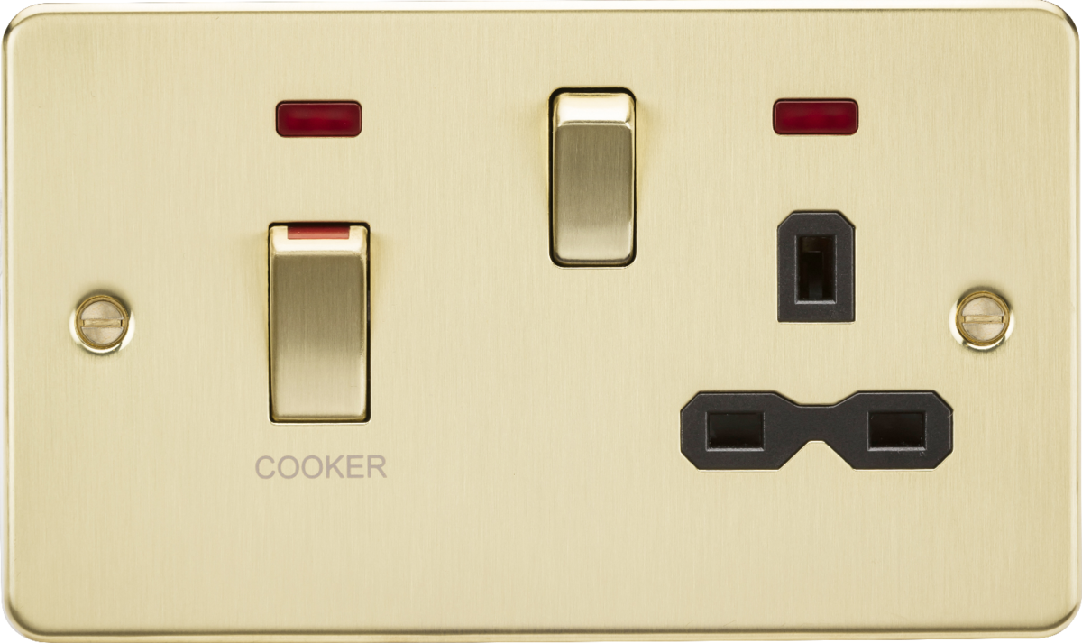 Knightsbridge: FPR83MNBB, Brushed Brass 45A DP Switch & 13A Socket, IP20, Neon Indicators, 230V, 12A