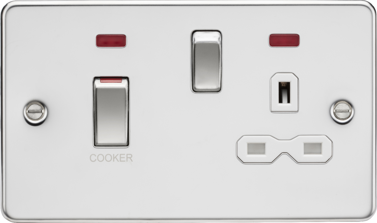 Introducing our 45A DP Switch & 13A Socket with Neons in Polished Chrome with a White Insert.