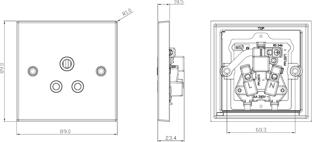 Knightsbridge: CS5AAB, 5A Unswitched Socket, Antique Brass, Square Edge, IP20, BS 546, 230V