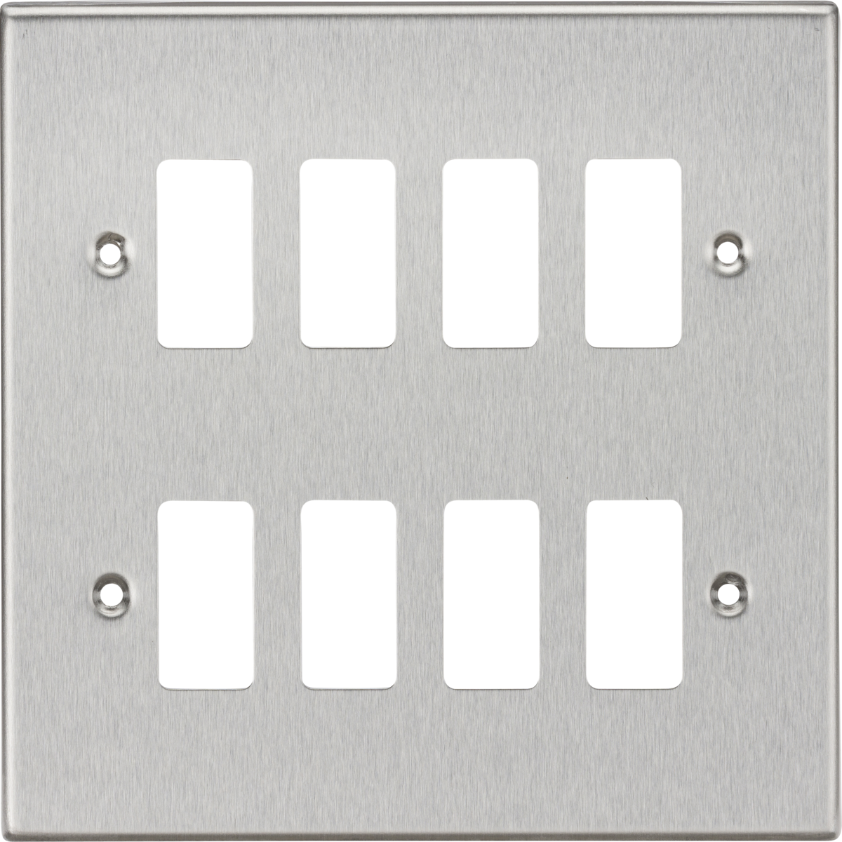 Knightsbridge: GDCS8BC, 8G Grid Faceplate, Brushed Chrome, Square Edge, IP20, Premium Grade Steel