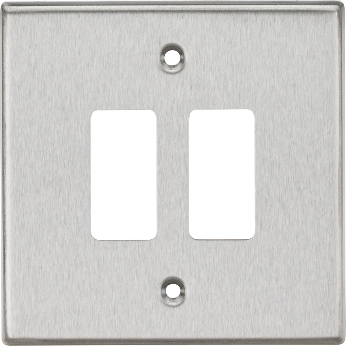 Knightsbridge: GDCS2BC, 2G Grid Faceplate, Brushed Chrome, Square Edge, IP20, Premium Grade Steel, 89x89mm