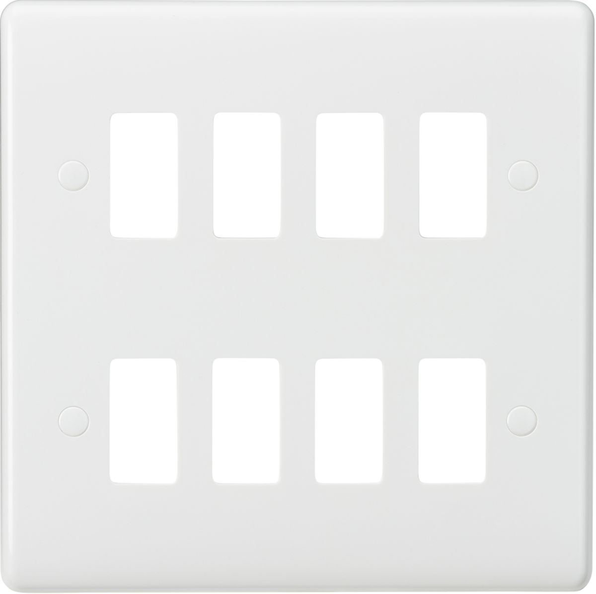 Knightsbridge: CUG8, 8G Curved Edge Grid Faceplate, IP20, White Finish, Supports 8 Modules, Thermoset Resin