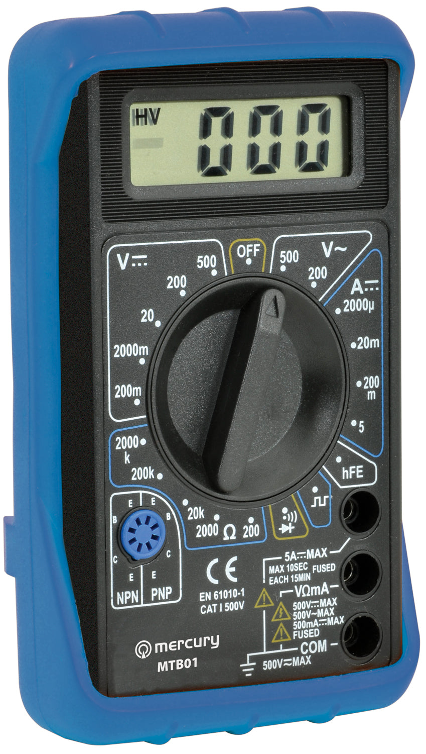 Mercury: 600.101UK, Digital Multimeter, 19 Ranges, 7 Functions, 200-500V AC/DC, Includes Probes & Battery