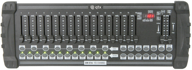 QTX: 154.093UK, 192 Channel DMX Controller, 12 Fixtures, 16 Faders, MIDI Compatible