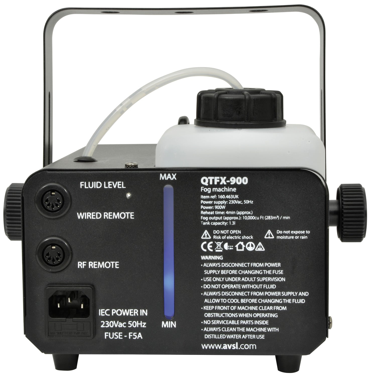 QTX: 160.476UK, QTFX-900 Fog Machine, 900W, 10,000 Cu Ft/Min Output, Wired/Wireless Remote, 1.3L Fluid Capacity