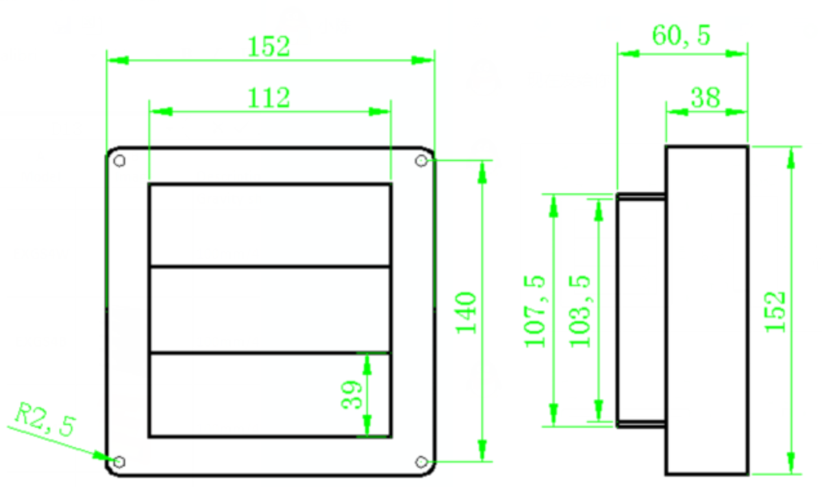 • Dimensions:Width 152 mm, Height 152 mm, Projection 38 mm, Recessed Depth 22 mm, Cut-out Diameter 105 mm