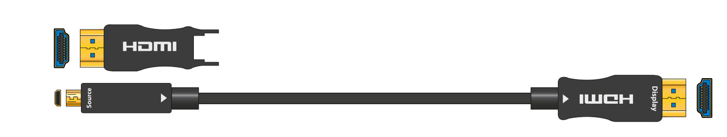 High Speed HDMI leads that utilise fibre optic technology to carry the HDMI signal, allowing much greater transmission range than standard cables without degradation. These leads specifically designed for installers come with an innovative detachable plug on one end that when removed reveals a micro HDMI plug with a reduced diameter meaning a much smaller hole can be drilled.