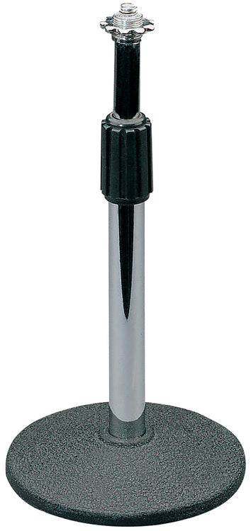 QTX: 188.079UK, Telescopic Stand, Adjustable Height 230-380mm, Sturdy Base, 5/8" Thread, Black Metal & Chrome Finish