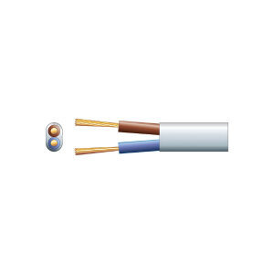 Oval profile mains electric cable with a flexible PVC sheath suitable for light electrical applications.