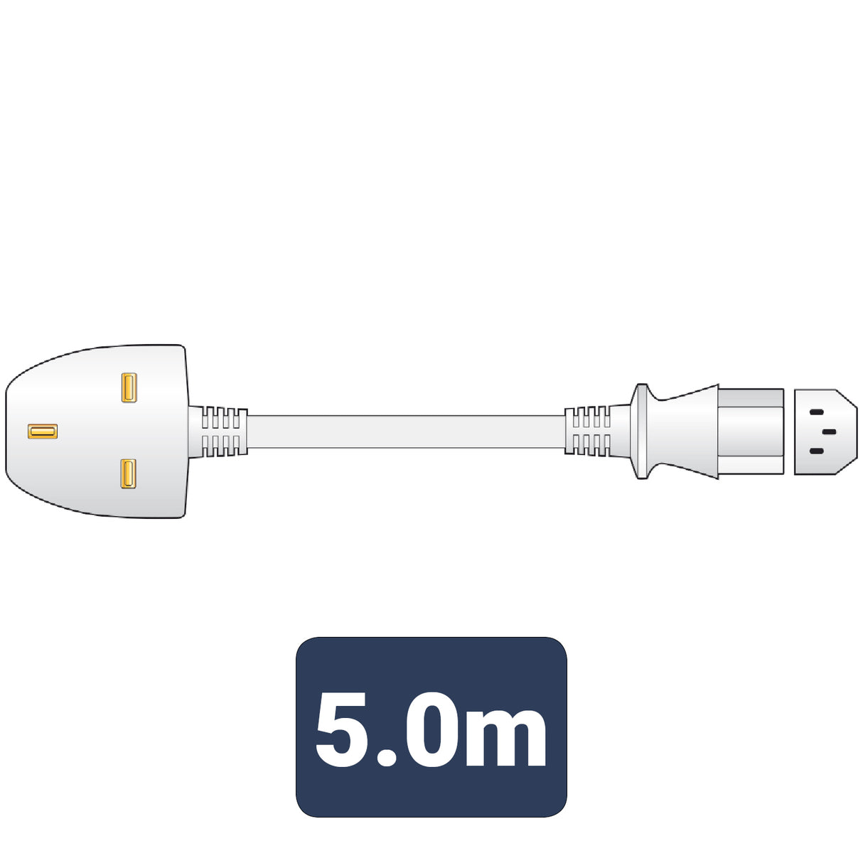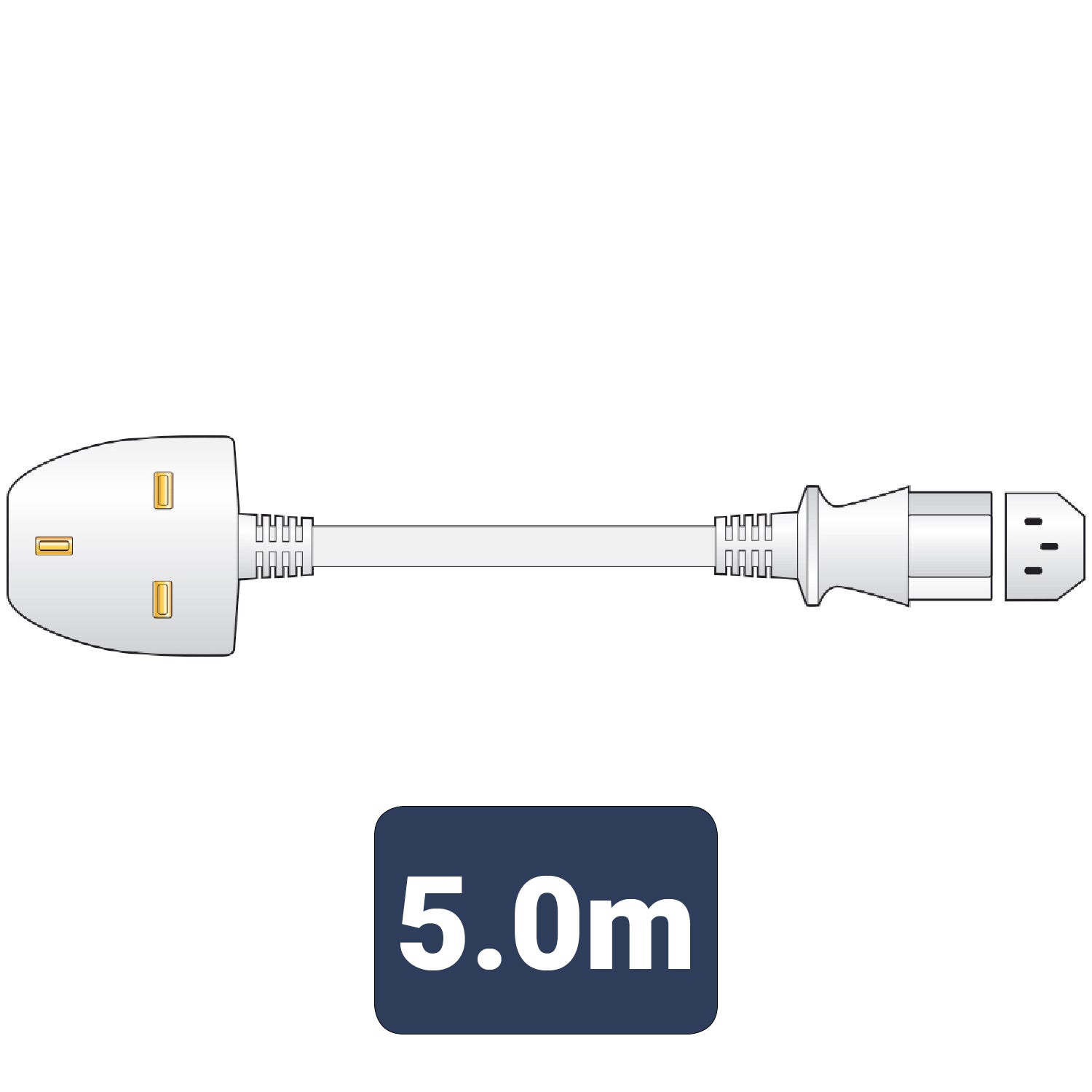 Mercury: 114.019UK, Mains Power Lead, 5m Length, IEC C13, 10A, BS Approved, White