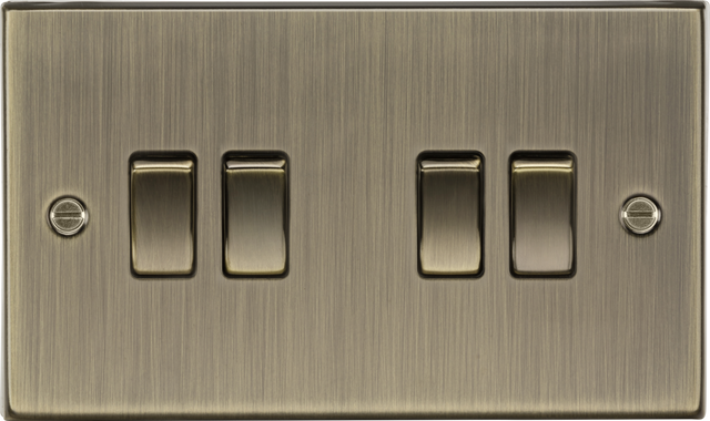 Knightsbridge: CS41AB, 10AX 4-Gang 2-Way Plate Switch, Square Edge, Antique Brass, CE Certified, 230V