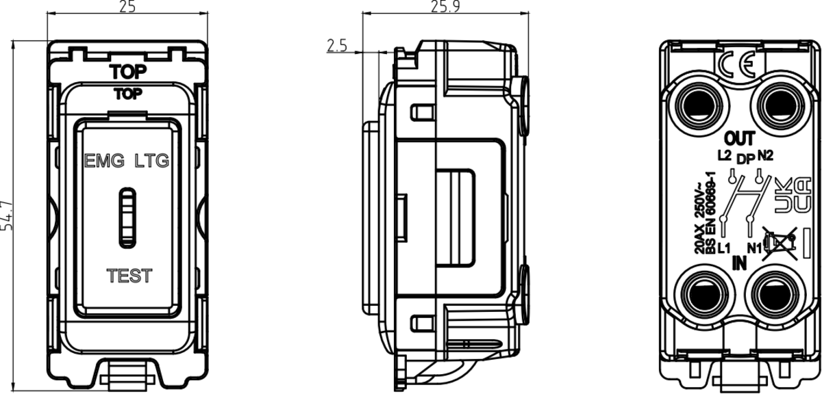 The 20AX DP Key Switch Module is designed for use with the Curved Edge Switches and Sockets range. It is specifically tailored for the curved grid system.