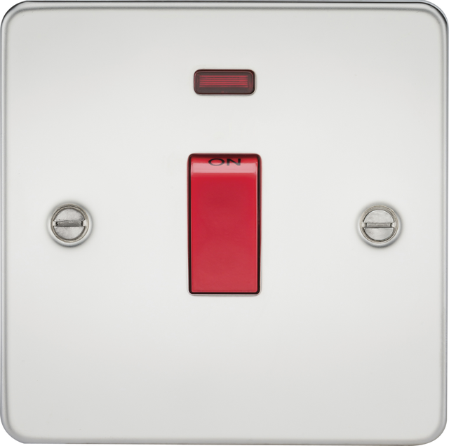 Knightsbridge: FP8331NPC, 45A Double Pole Switch, Neon Indicator, Ultra Low Profile, Polished Chrome, 230V, 1 Gang