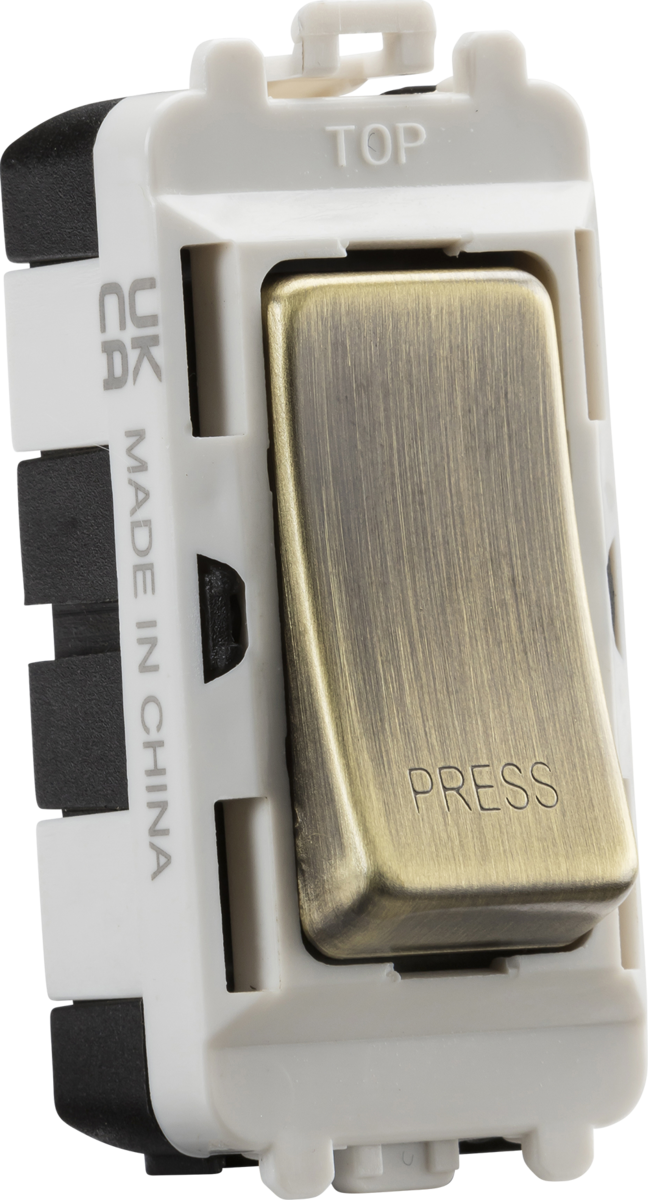 Knightsbridge: GDM006AB, 20AX 2 Way Retractive Switch Module, Antique Brass, Grid Compatible