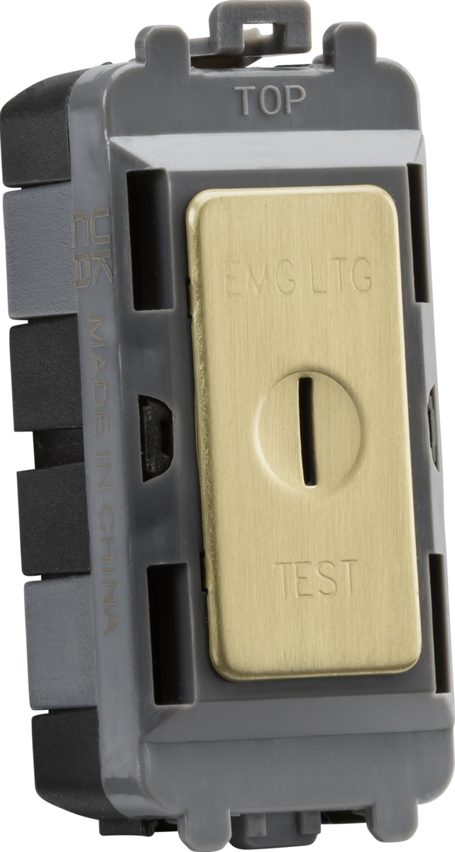 Knightsbridge: GDM007BB, 20AX 2 Way SP Key Module, EMG LTG TEST, Brushed Brass Finish, Knightsbridge Grid System, 230V
