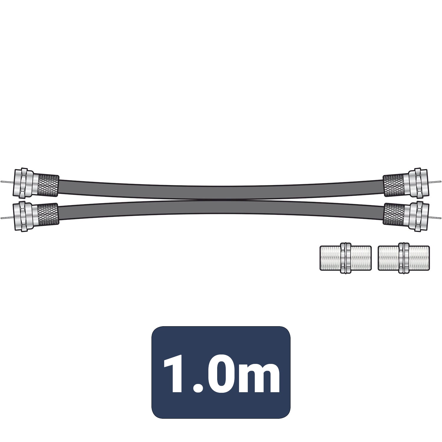 AV:Link: 112.021UK, Twin RG6 Satellite Extension Kit, 1m, Black, F-Type Connectors, High-Quality