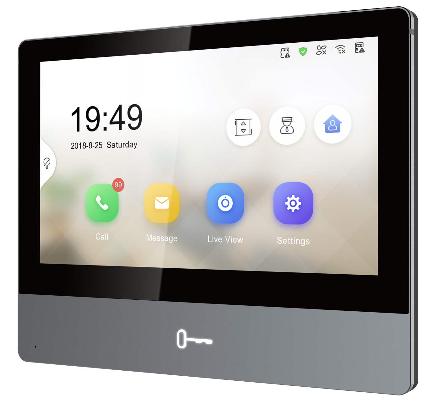 HikVision: DS-KH8350-WTE1, Video Intercom Indoor Station, 7-Inch IPS Touchscreen, Tempered Glass, Aluminium, PoE, Wi-Fi