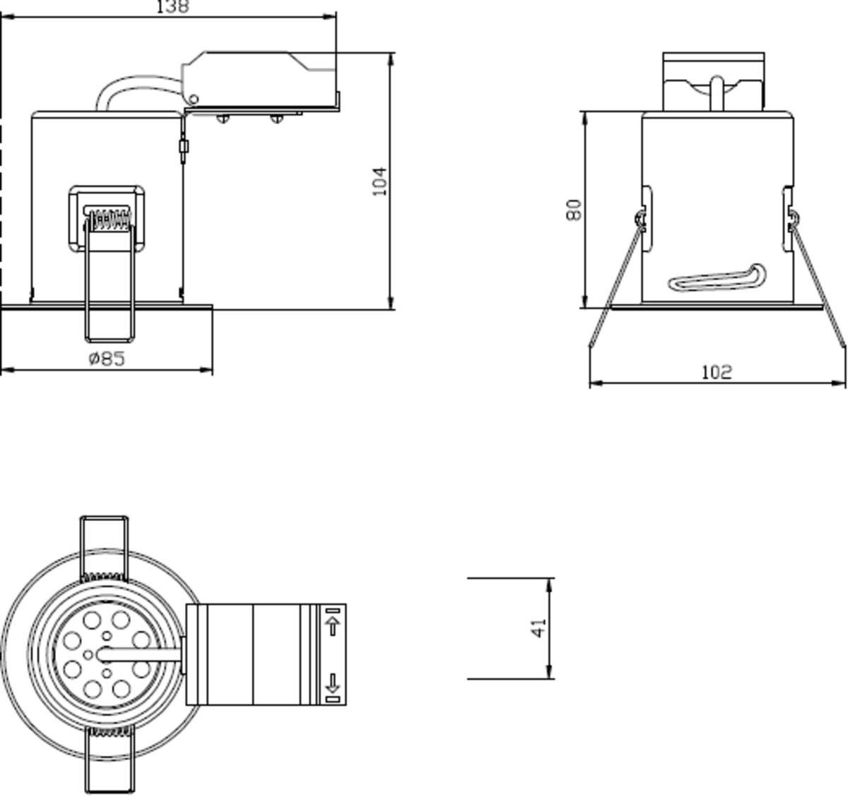 • Dimensions:76mm height, 85mm diameter, 4mm projection, 150mm minimum void, 100mm recessed depth, 65mm cut-out diameter