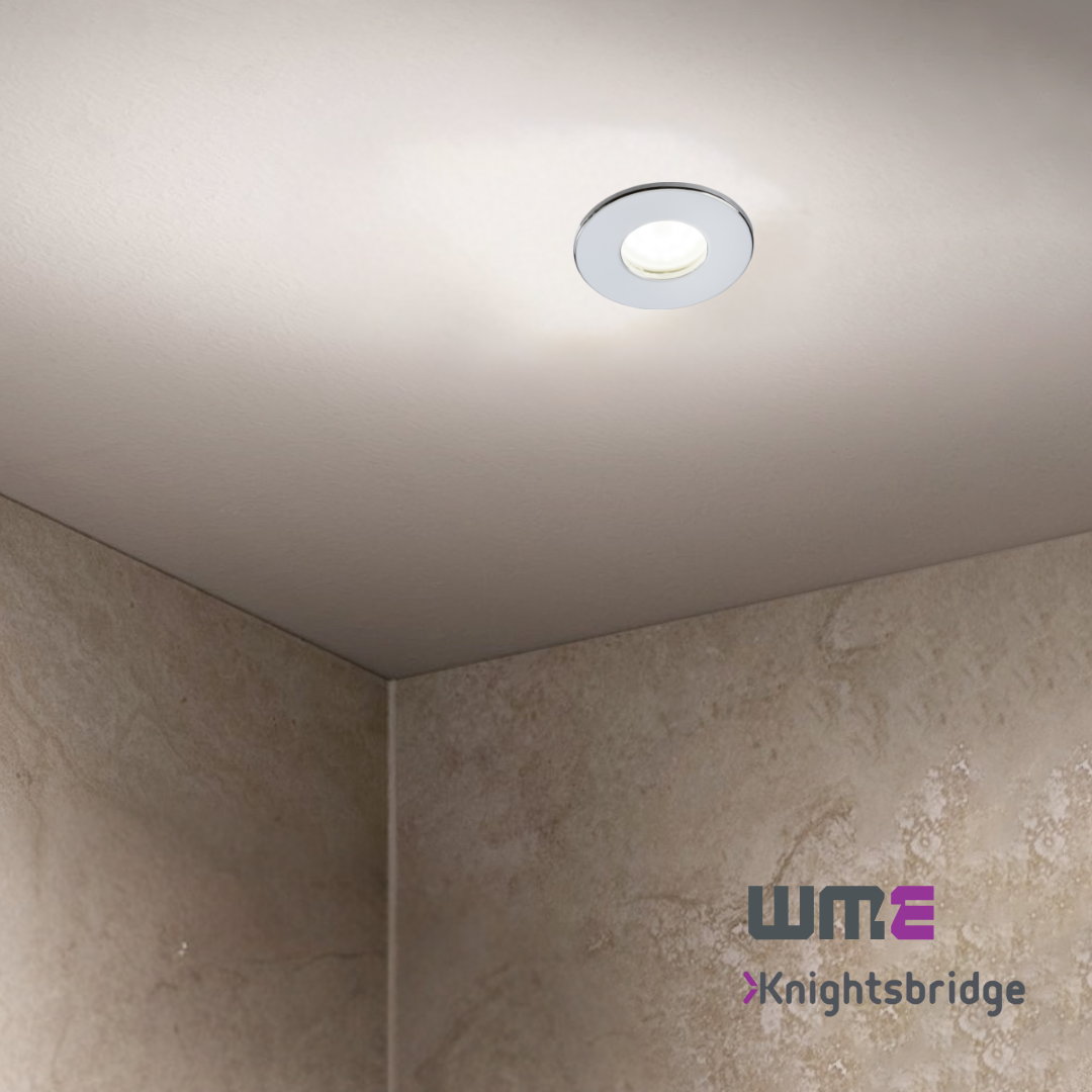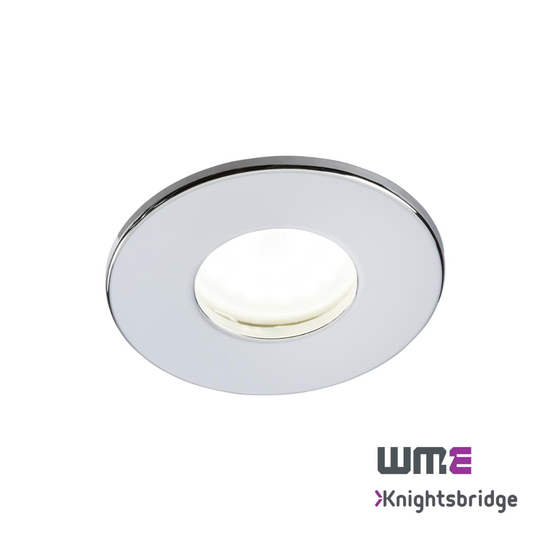 Knightsbridge: VFCFIPC, 230V IP65 Fixed GU10 Fire-Rated Downlight, Chrome Finish, Dimmable, 35W Max, Fast-Fix Installation
