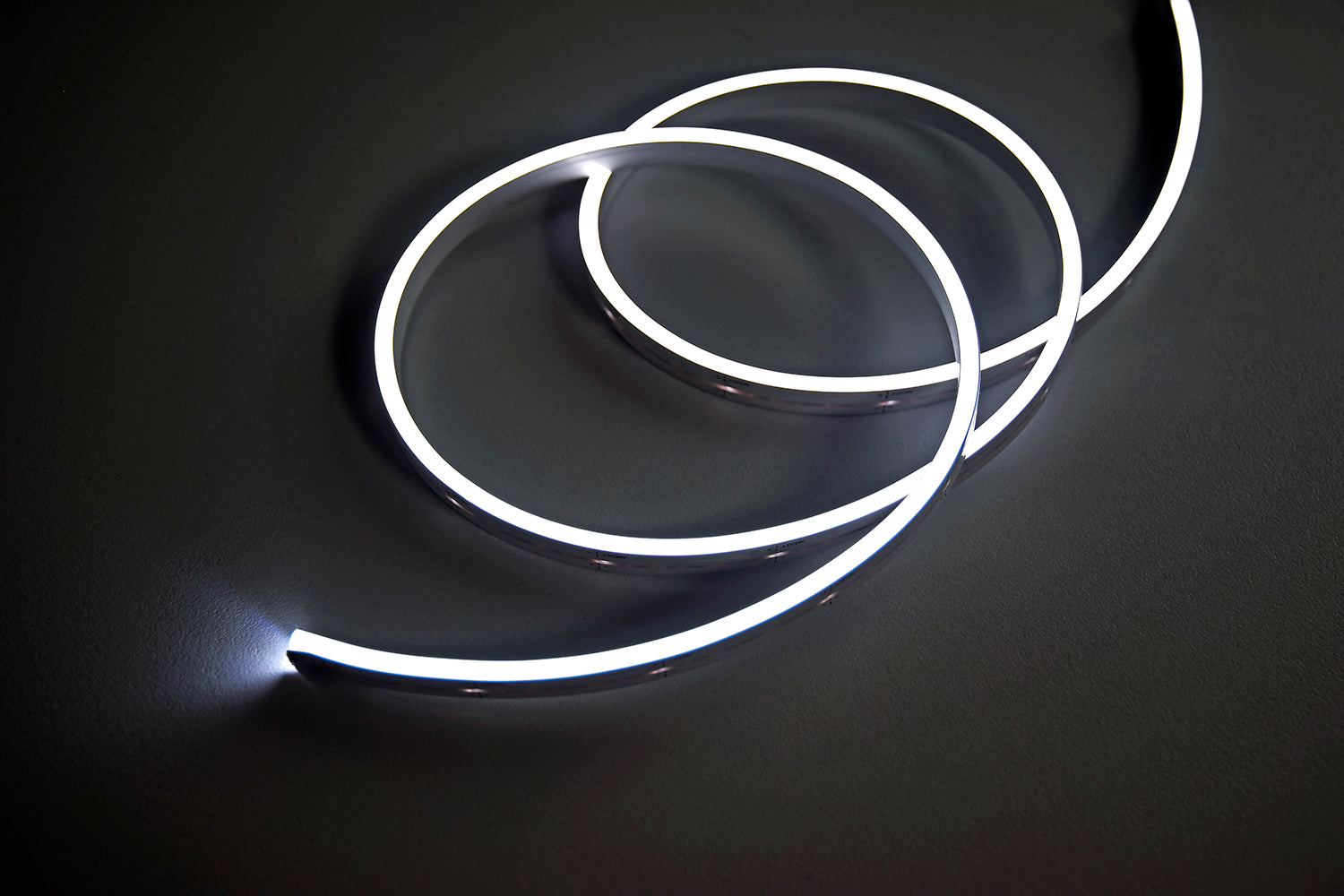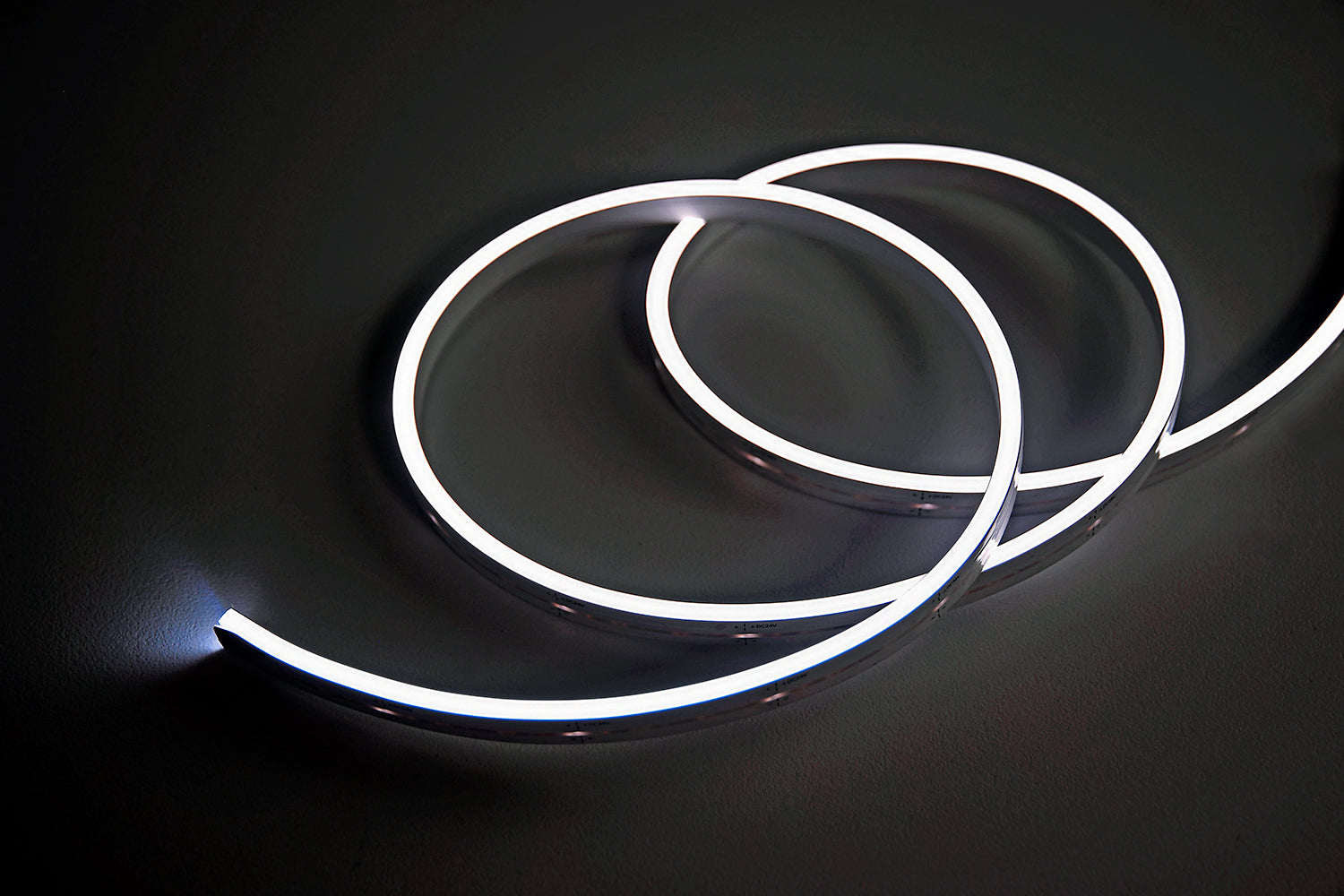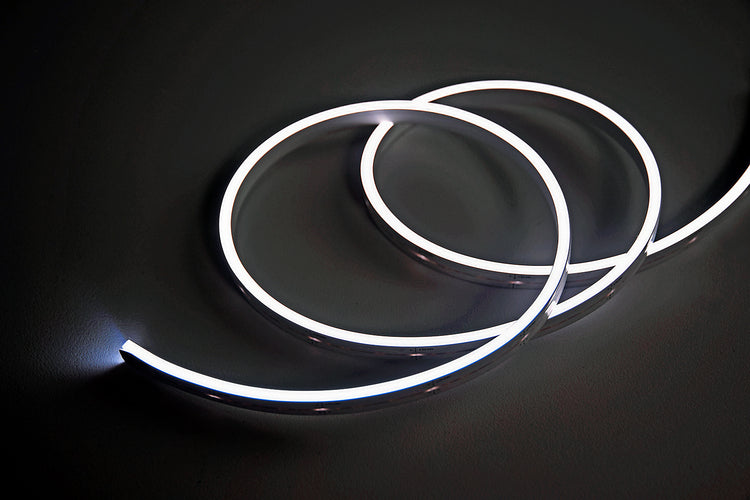 30m of unique tape that is 4mm wide and 8mm tall - designed to bend more easily than traditional LED tape and features a frosted extrusion surface to give a seamless smooth look without the need for a profile. Available in Warm White, Natural White and Cool White, this IP66 rated tape has multiple applications in home and commercial settings. Simply cut to the required length, attach DC cabling, and then seal with end caps.