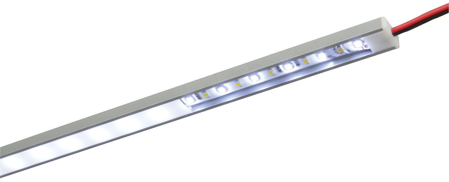 - Extruded aluminium shallow section profile with diffuser and fitting accessories.
