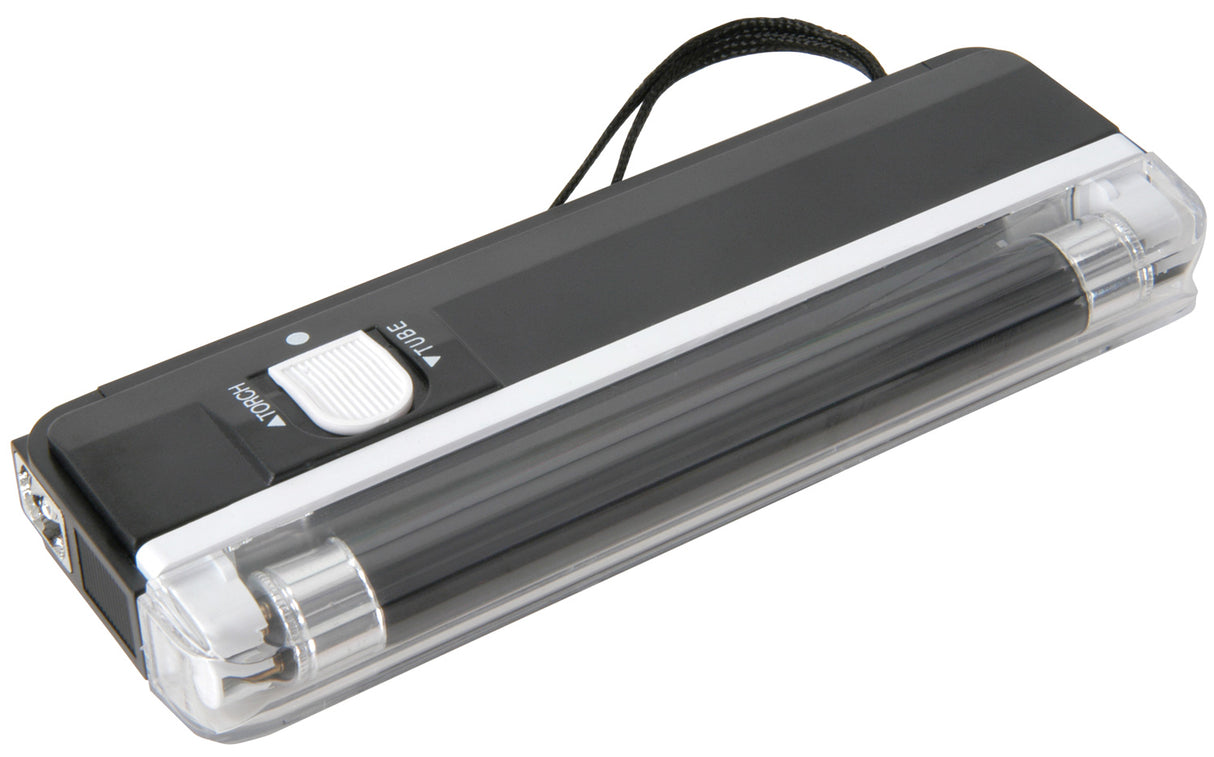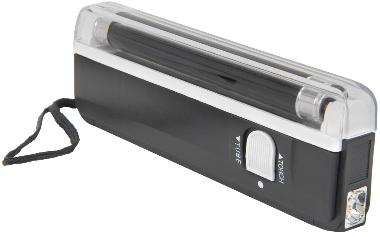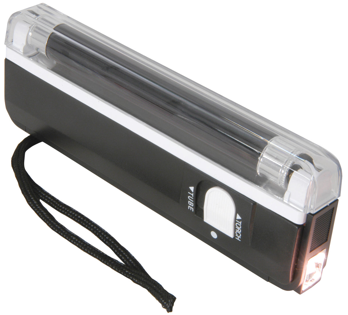 This compact, pocket-sized black light tube features a built-in torch, making it perfect for verifying bank notes, stamps, and identification documents.