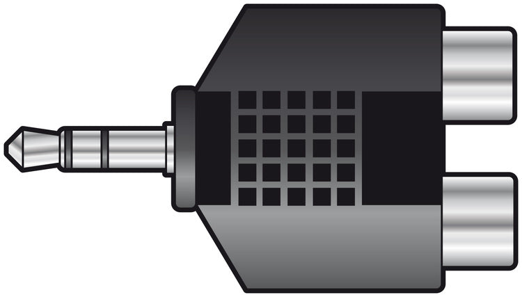 An adaptor converting a 3.5mm stereo jack plug to 2 x RCA phono sockets. Ideal for splitting a stereo signal into left and right channels for speaker, amplifier and mixer connections.