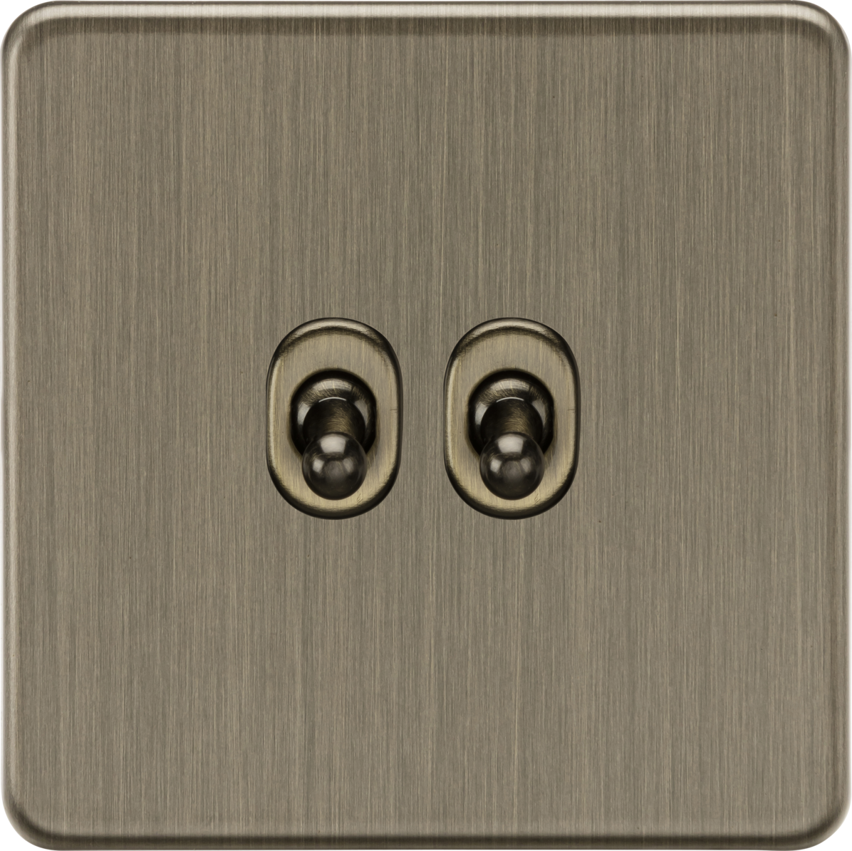 Knightsbridge: SF2TOGAB, 10AX 2G 2-Way Toggle Switch, Antique Brass Finish, Ultra Slim Design, Moisture Protected, 230V