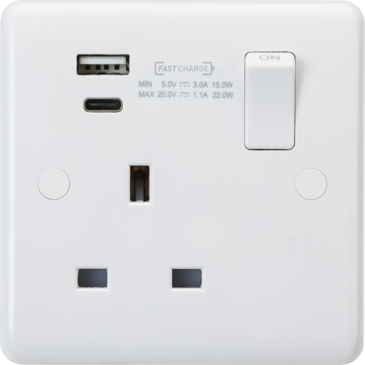 Knightsbridge: CU9919D, 13A DP Switched Socket, Dual USB A+C Fast Charging, White Finish, Max 22W