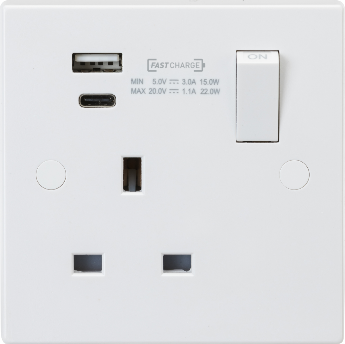 Knightsbridge: SN9919D, 13A DP Switched Socket with Dual USB A+C, 22W Output, White Finish