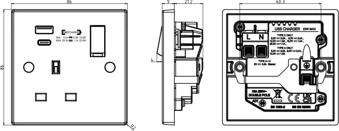 The 13A 1G DP Switched Socket is designed for versatile power needs with dual USB A+C outputs. Ideal for charging smartphones, tablets, and more without needing multiple chargers.