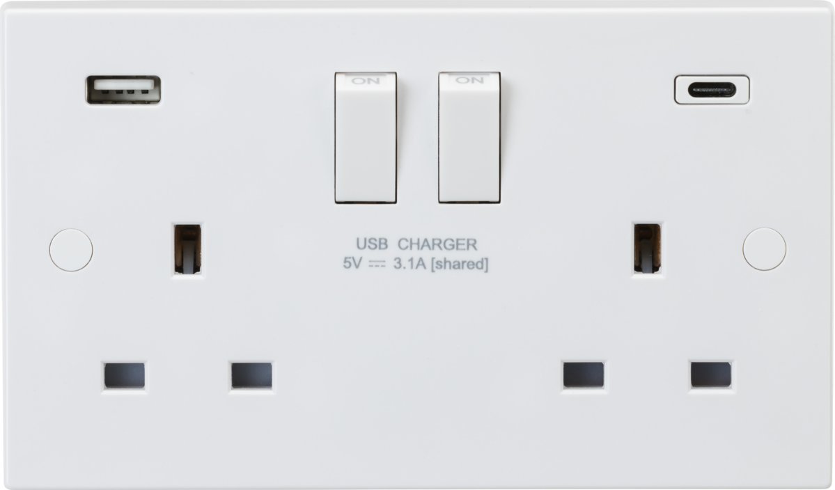 Knightsbridge: SN9931D, 13A 2G DP Switched Socket, Dual USB A+C, 3.1A, IP20, White