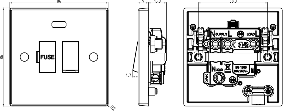 The Knightsbridge 13A Switched Fused Spur Unit with Neon is designed for durability and practical use. It features a hard-wearing, all-purpose Square Edge 9mm plate with anti-microbial properties.