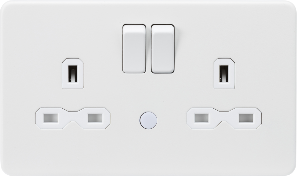 Knightsbridge: SFR9NLMW, 13A 2G DP Switched Socket, Photocell Nightlight, Matt White, IP20, SPCC Steel, 230V
