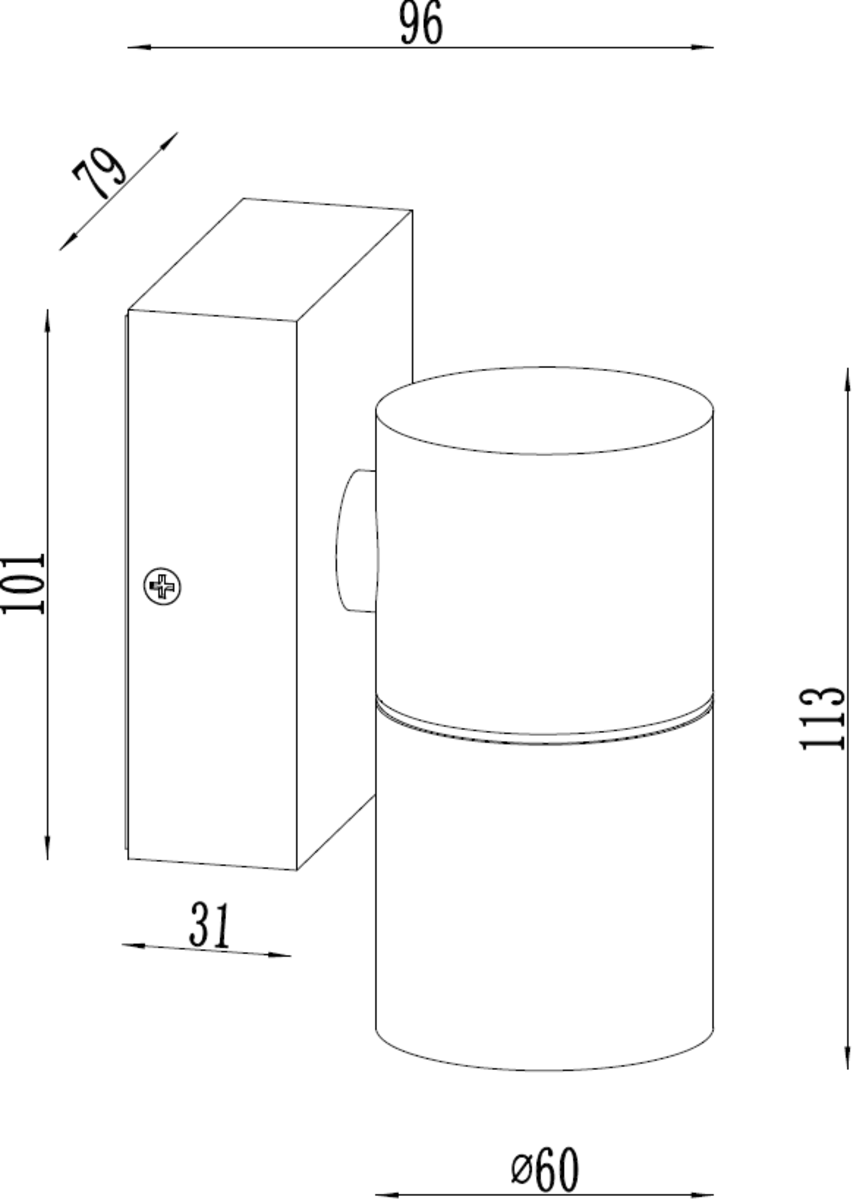 • Dimensions:Height - 120 mm, Diameter - 60 mm, Projection - 96 mm