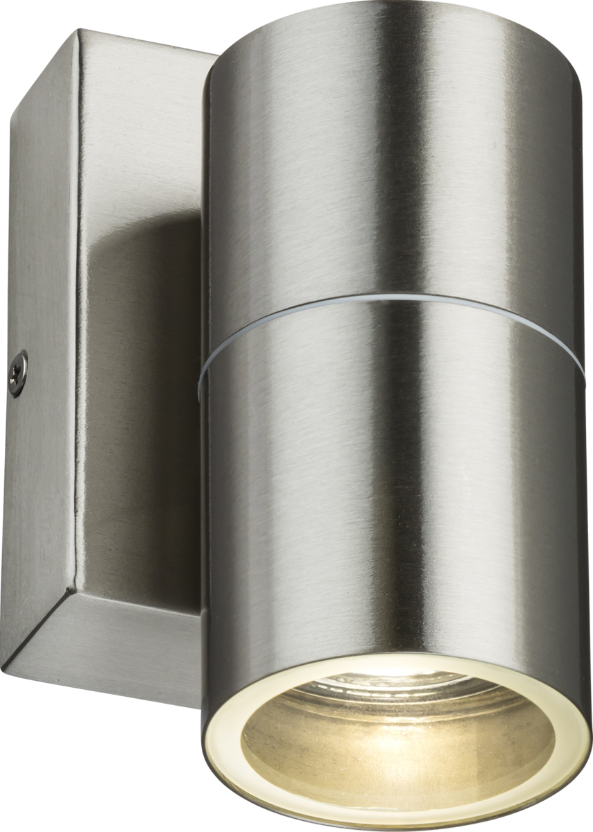 Enhance your outdoor space with this stylish and functional single wall light in a brushed chrome finish. Suitable for both commercial and domestic applications.