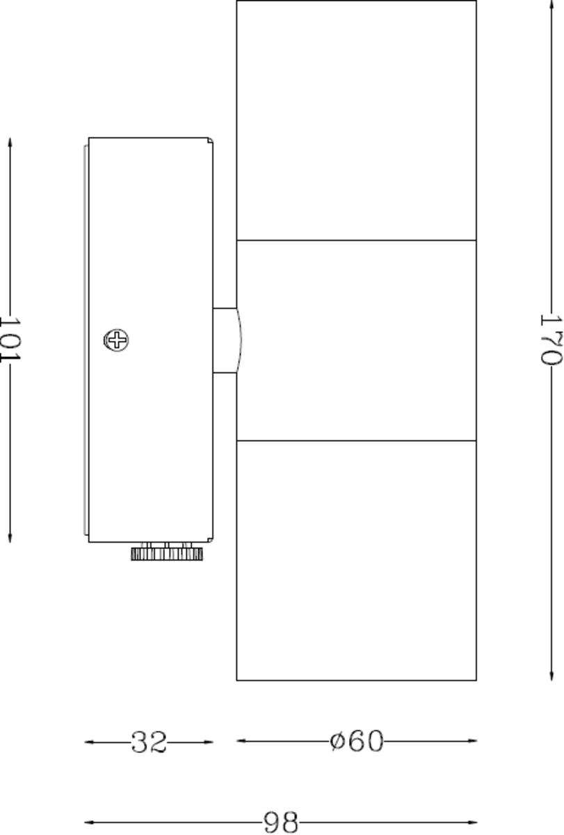 • Dimensions:Height: 170 mmDiameter: 60 mmProjection: 98 mm