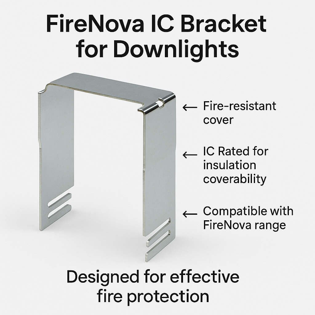 The FireNova IC Bracket is an essential component designed specifically to make the FireNova range of downlights insulation-coverable. Crafted from durable steel, this bracket ensures effective installation of fixed and tilt options. It’s IC rated for use with LED lamps, with a power capacity of up to 7W Max.