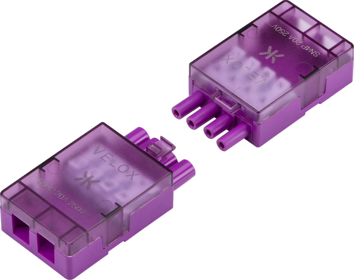 Introducing the VELOX 20A 4-Pin Lighting Connector, designed for easy and efficient connections in your wiring needs: