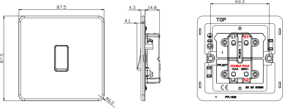 Knightsbridge: SF1000DPAT, 10AX Double Pole Screwless Switch, Anthracite, Low Profile Design, IP20, 230V, 1 Gang