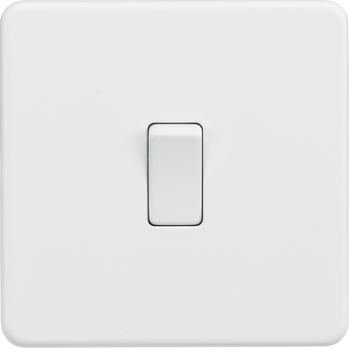 The 10AX 1G DP Switch in Matt White is the perfect finishing touch for any modern home. It features a flawless screwless low profile metal design and a matching metal rocker.
