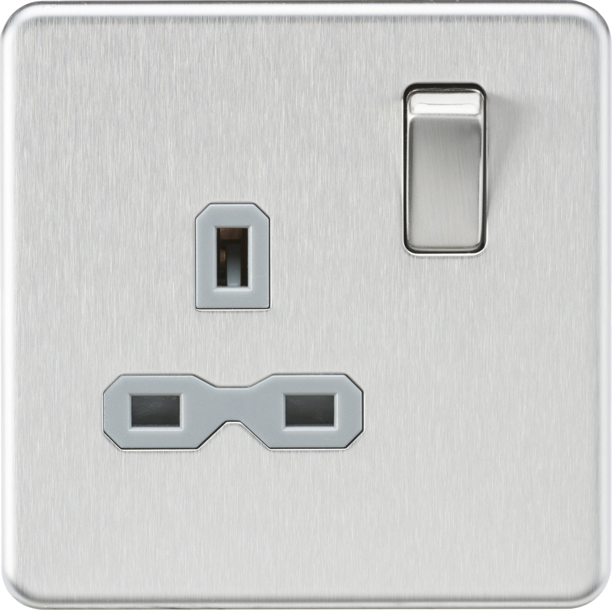 Knightsbridge: SFR7000BCG, 13A DP Switched Socket, 1 Gang, Screwless Flat Plate, Brushed Chrome, 230V, 25mm Box Depth