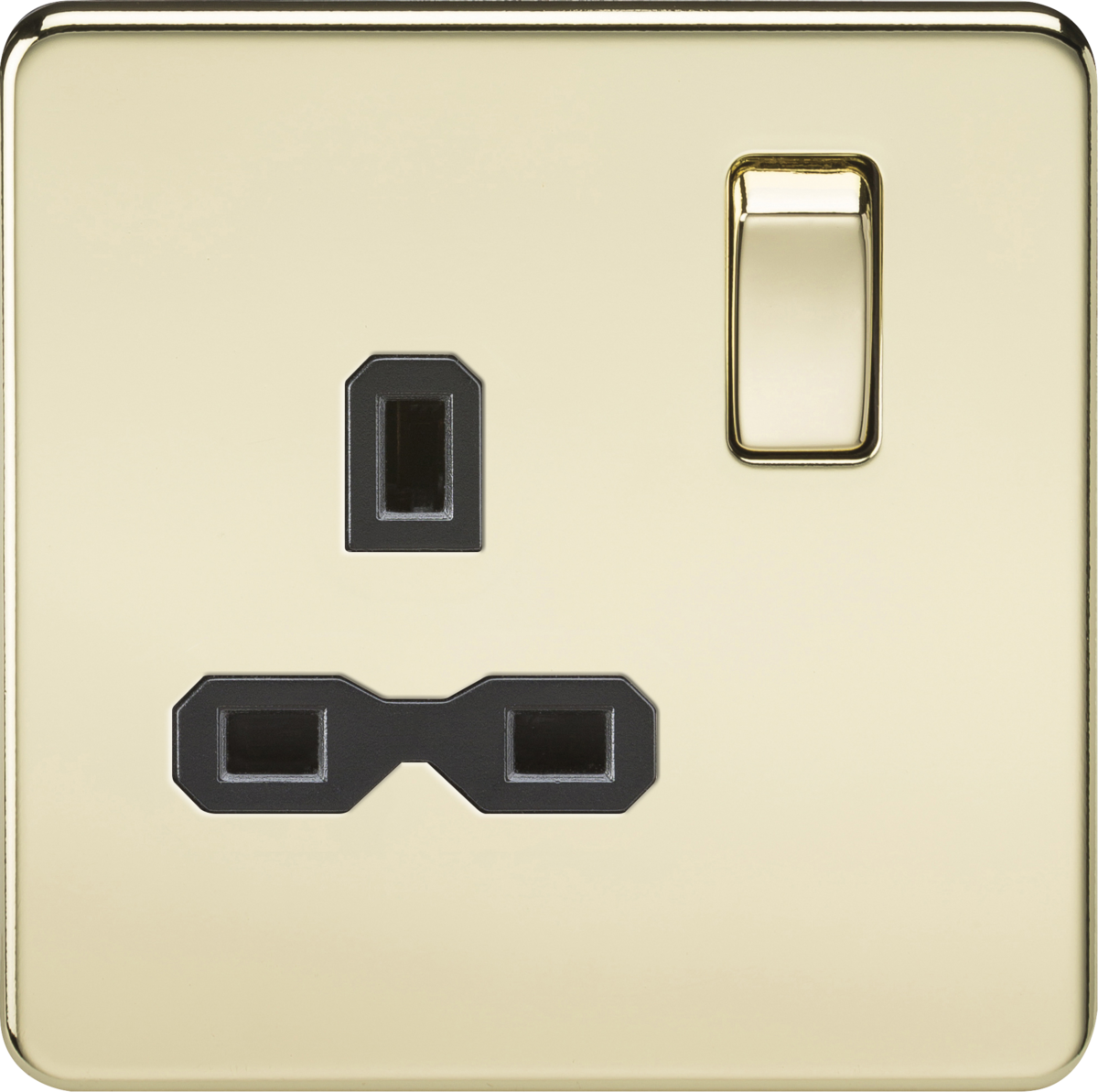 Knightsbridge: SFR7000PB, Polished Brass 13A 1G DP Switched Socket, Screwless Flat Plate, Double Pole, BS 1363:2 Certified