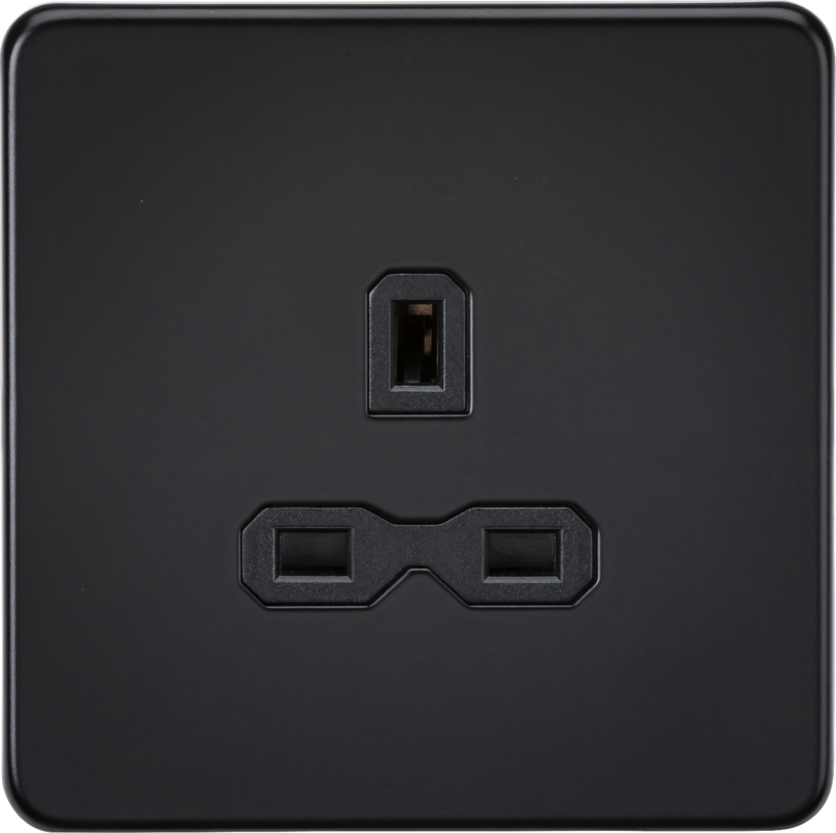Knightsbridge: SFR7000UMB, 13A Unswitched Socket, 1 Gang, Matt Black, Screwless Flat Plate, IP20, 230V