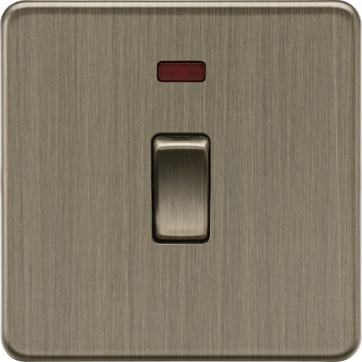 Knightsbridge: SF8341NAB, 20A Double Pole Switch with Neon Indicator, Screwless Antique Brass, 230V, 25mm Depth