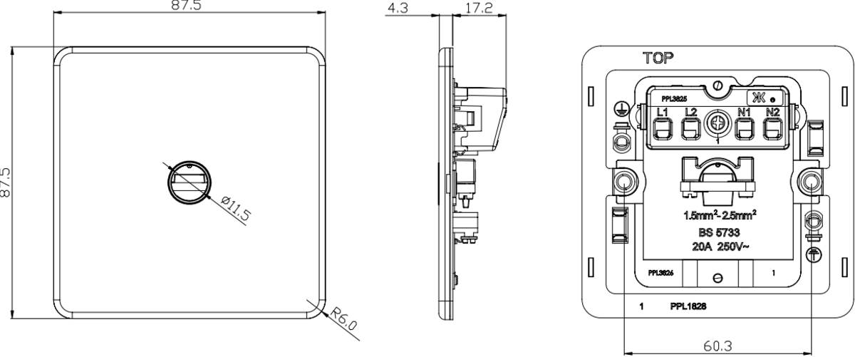 - Terminal capacity of 3 x 2.5mm2 or 2 x 4.0mm2 (fitted with twin earth terminals)