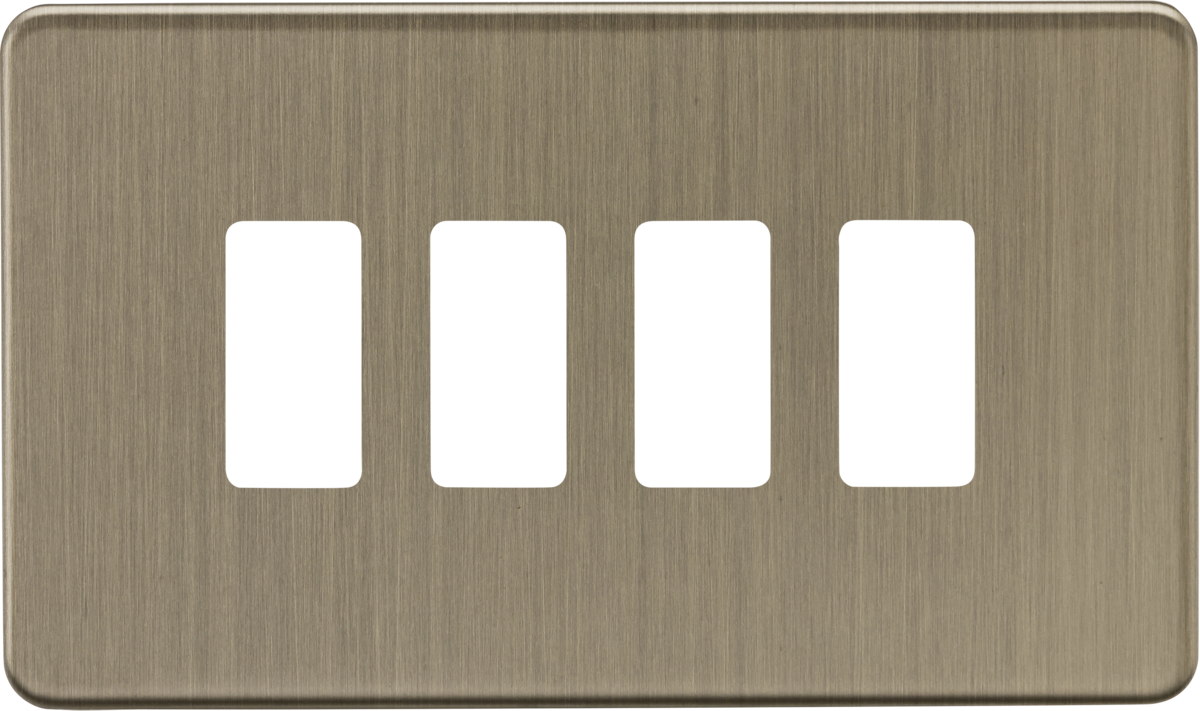 Knightsbridge: GDSF004AB, 4G Screwless Grid Faceplate, Antique Brass Finish, 201 Stainless Steel, IP20, 148mm Width