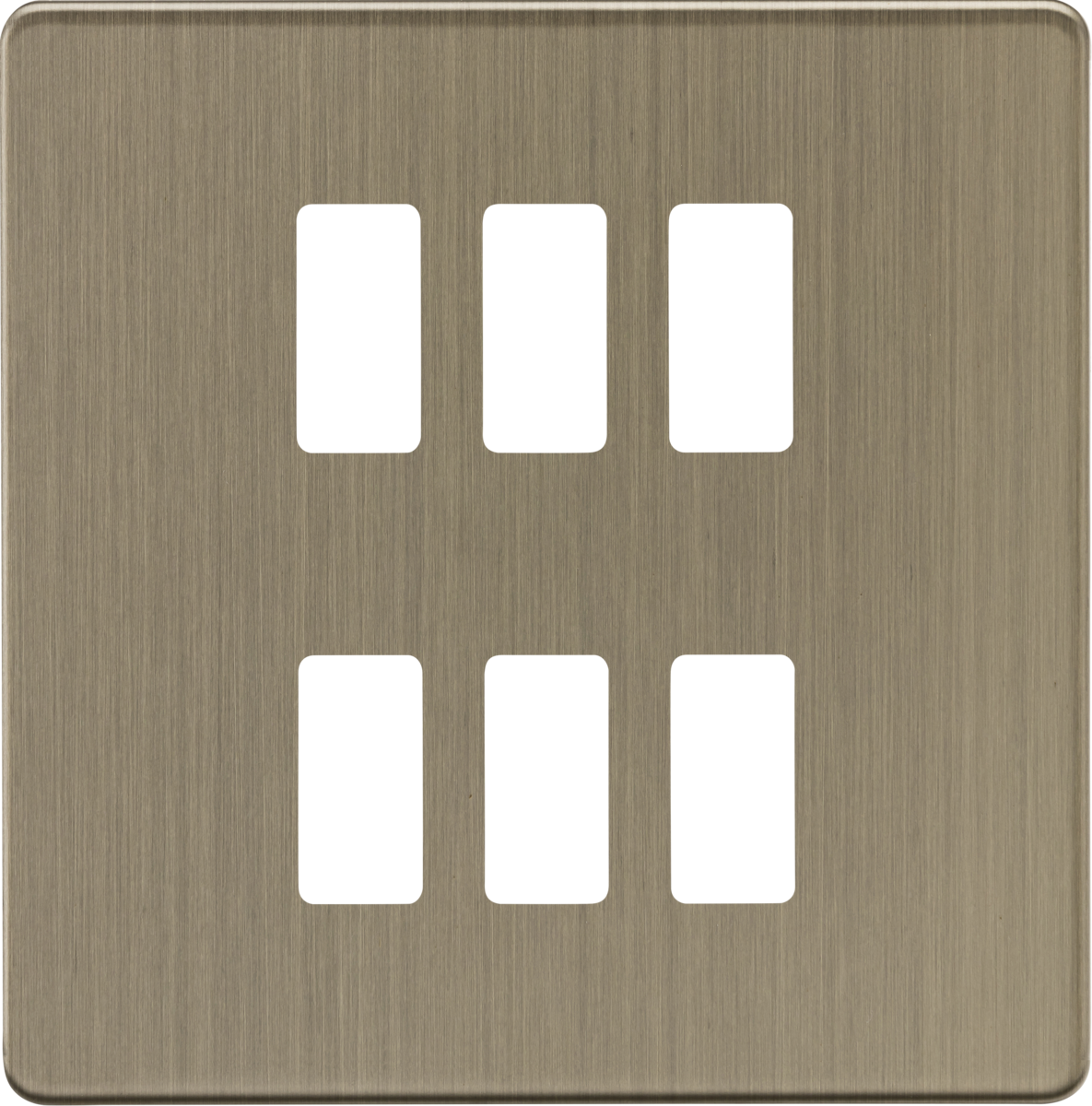 The 6G Grid Faceplate in Antique Brass is expertly designed to coordinate with the Screwless Switches and Sockets range.