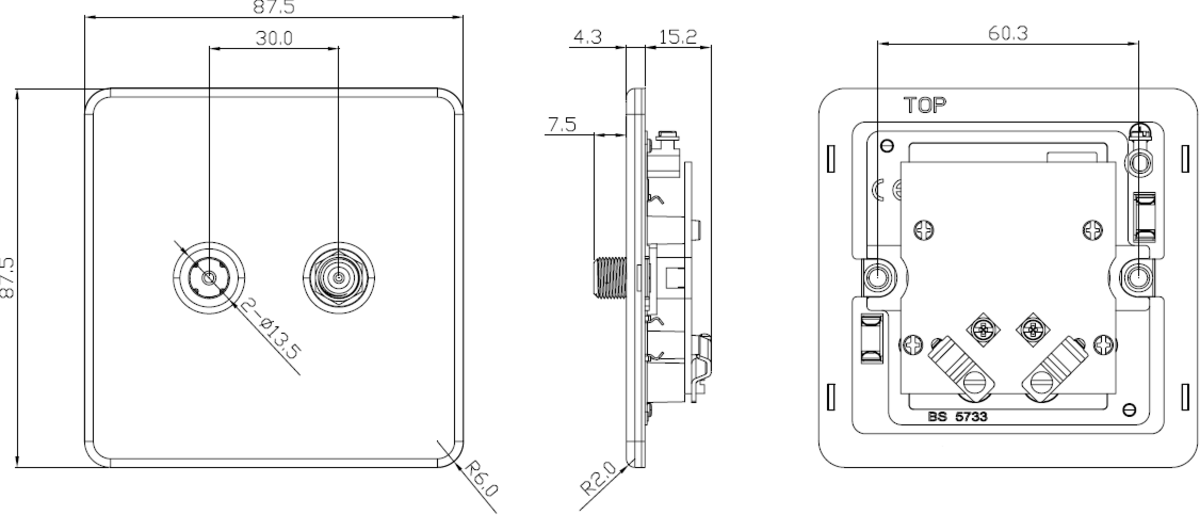 • Includes 1 x Coaxial and 1 x F-Type SAT TV outlet
