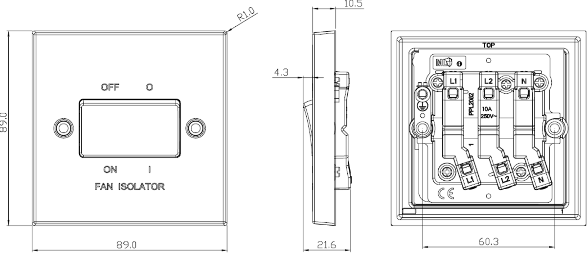 - Ideal for providing a safe and simple method of isolating fan units in en-suite bathrooms, family bathrooms, utility rooms, store rooms etc.
